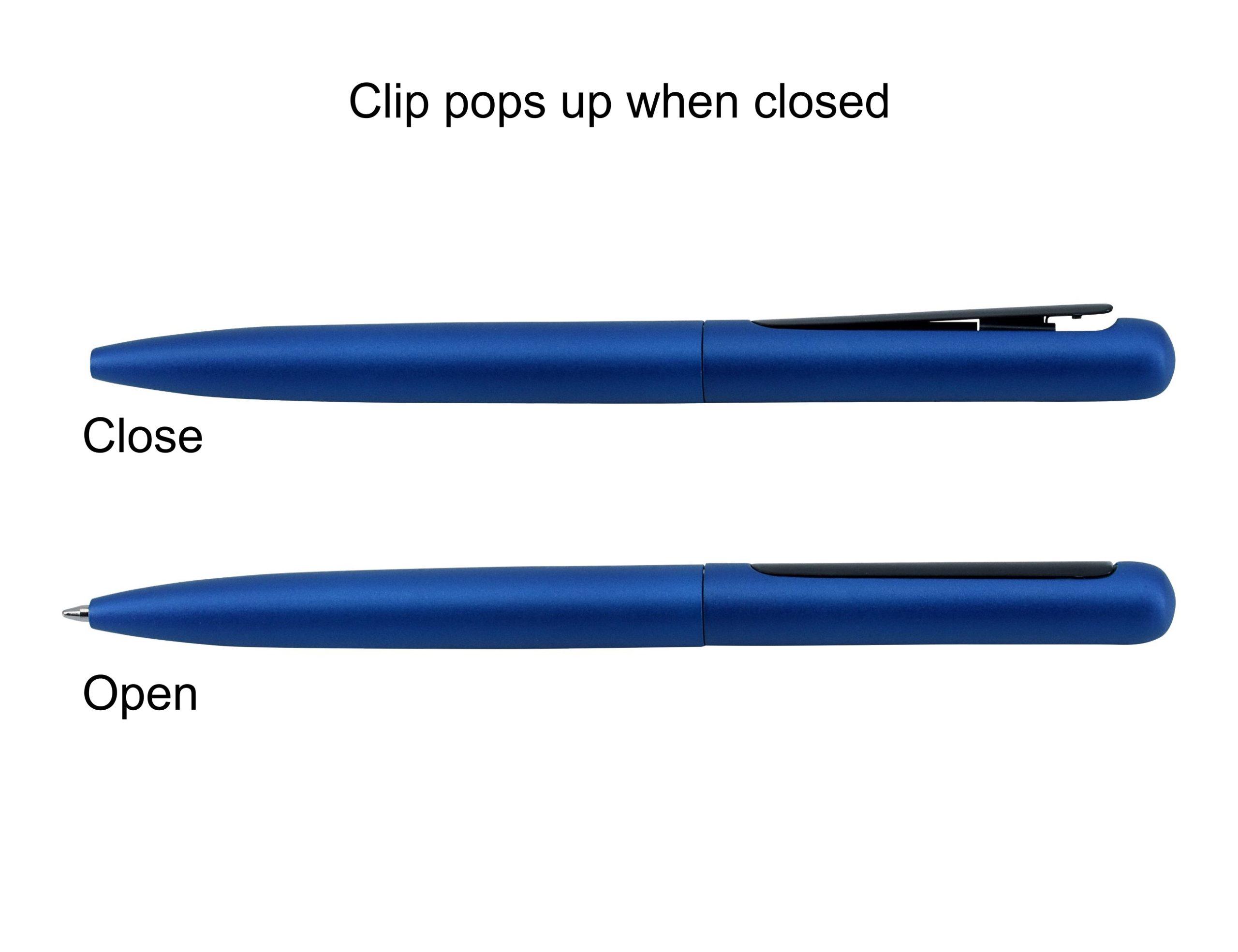 - Sleek in appearance, this twist-action pen is crafted from solid aluminium and features a self-retracting clip that folds away when the pen is in use
