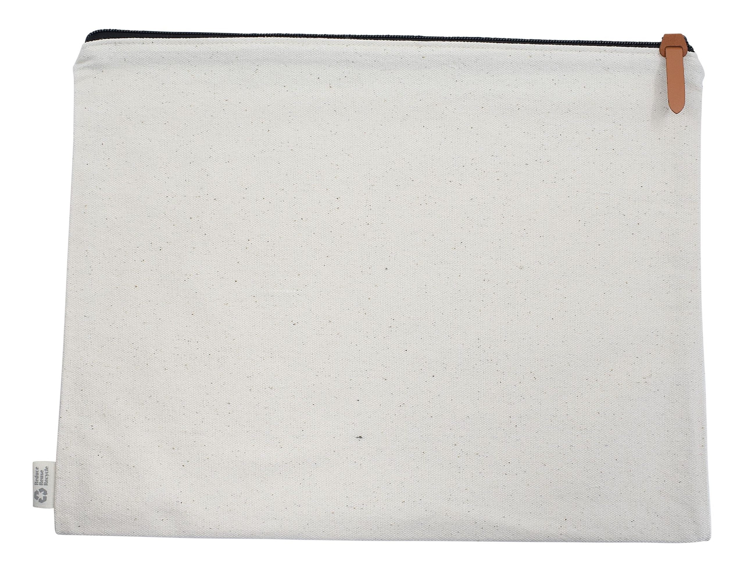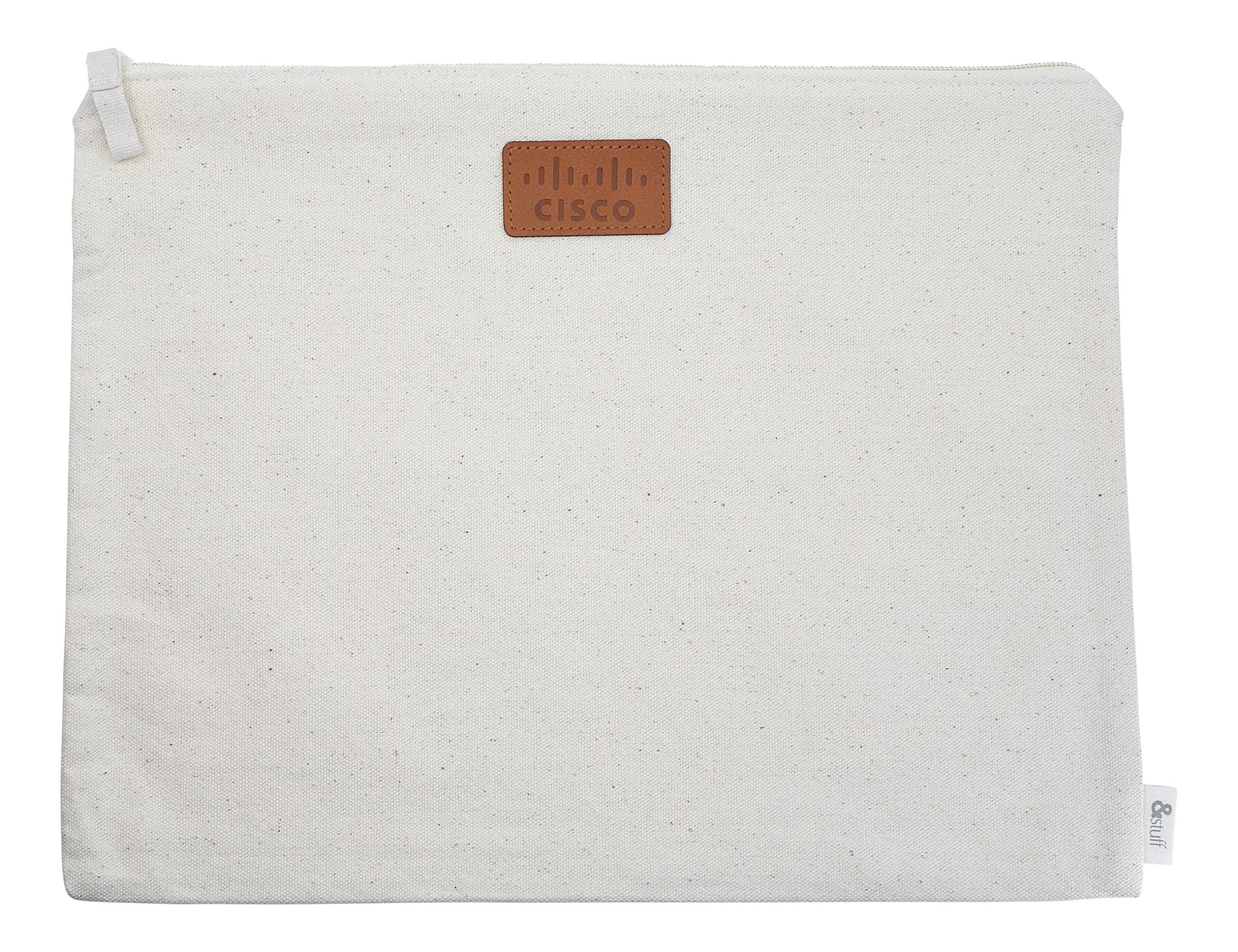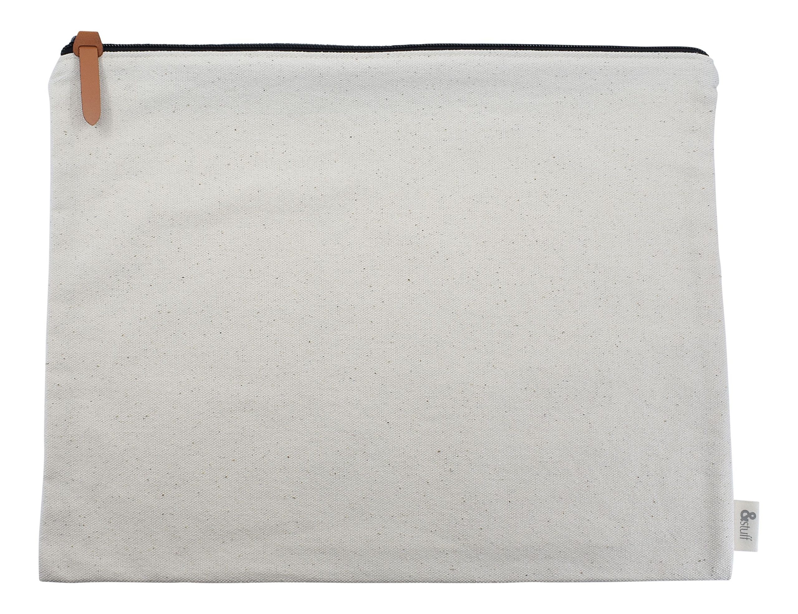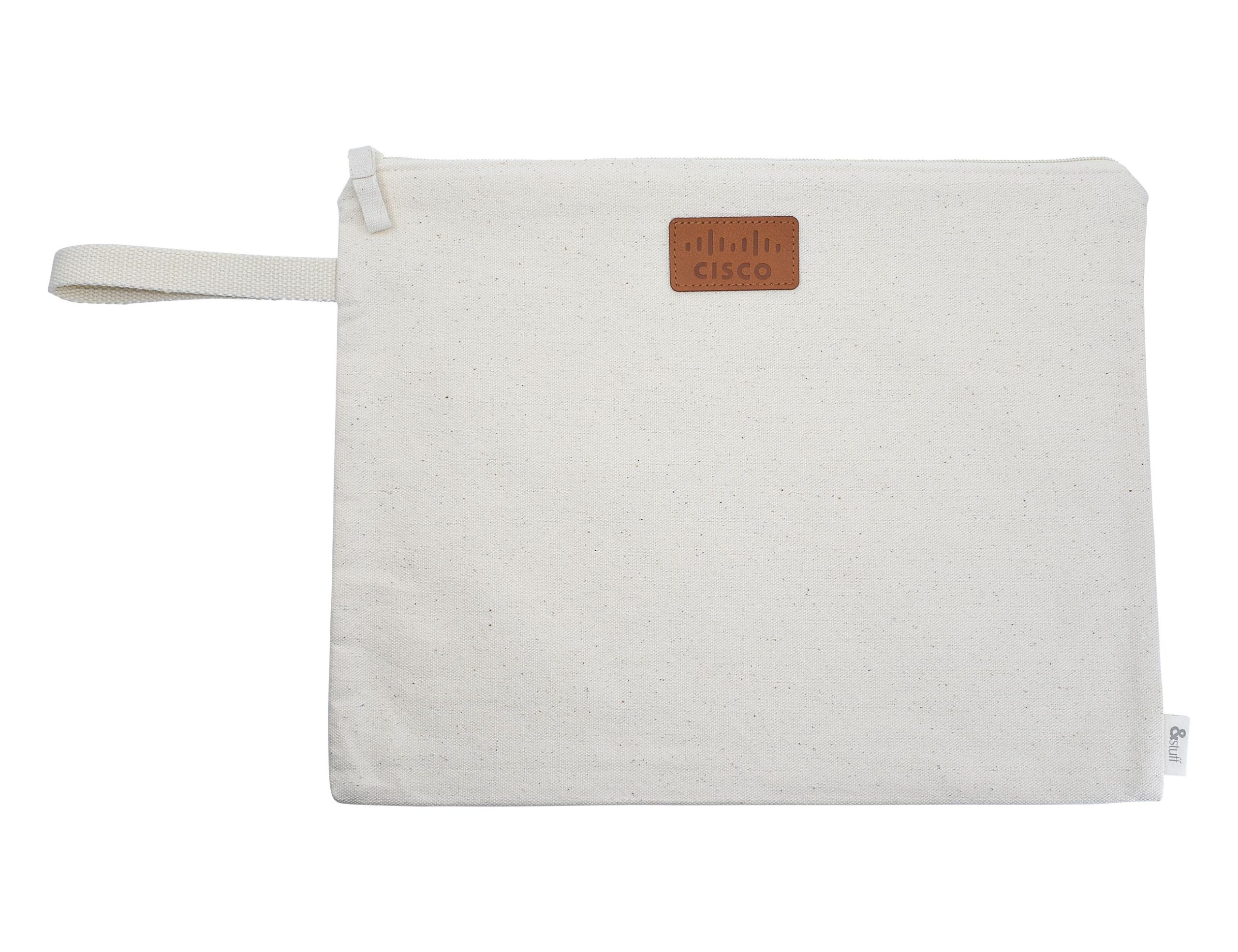 - Options – select either: (1) natural or black coloured zip, (2) natural cotton zip puller or leatherette zip puller, (3) cotton handle, (4) debossed logo onto the leatherette badge or screen printed directly onto the calico material