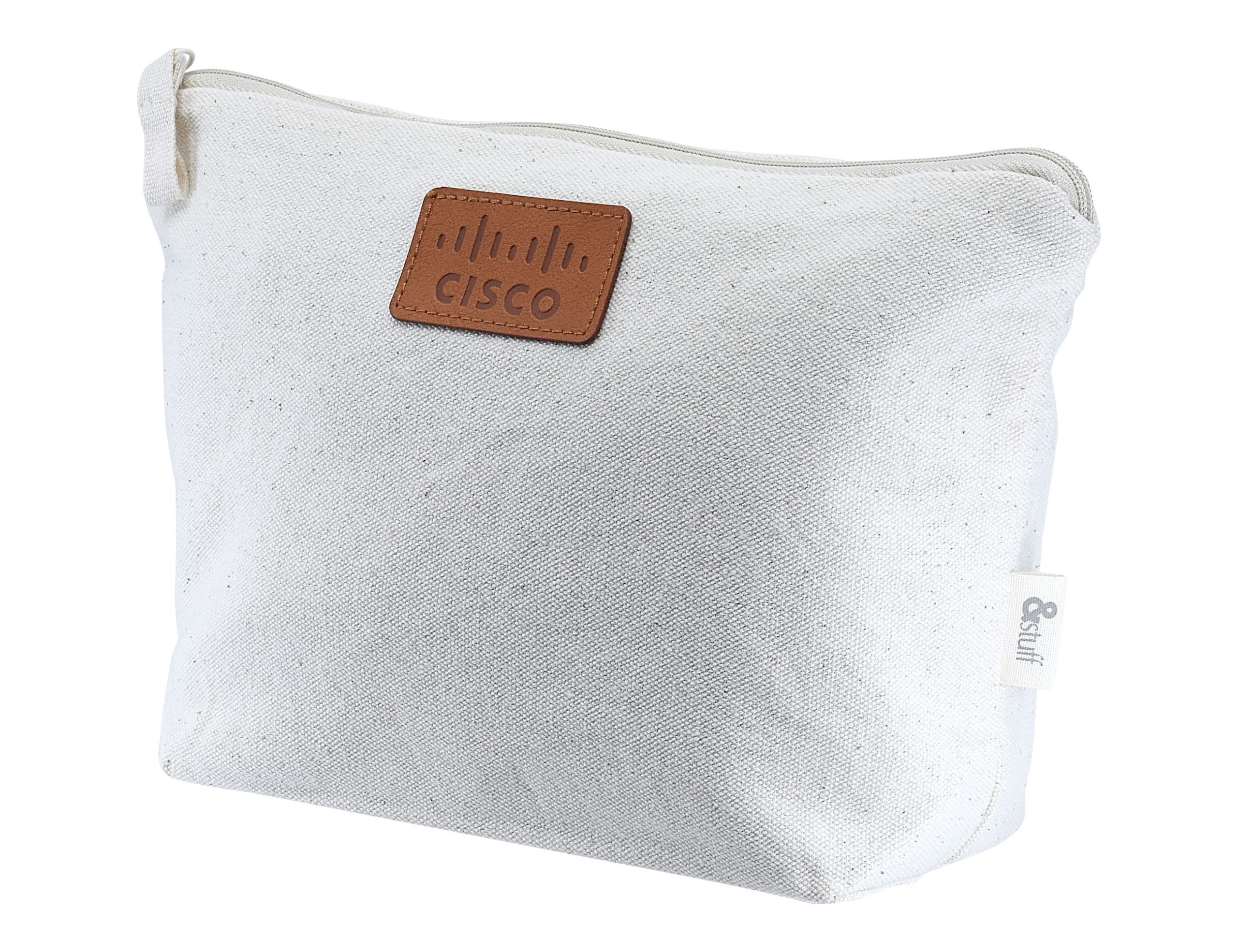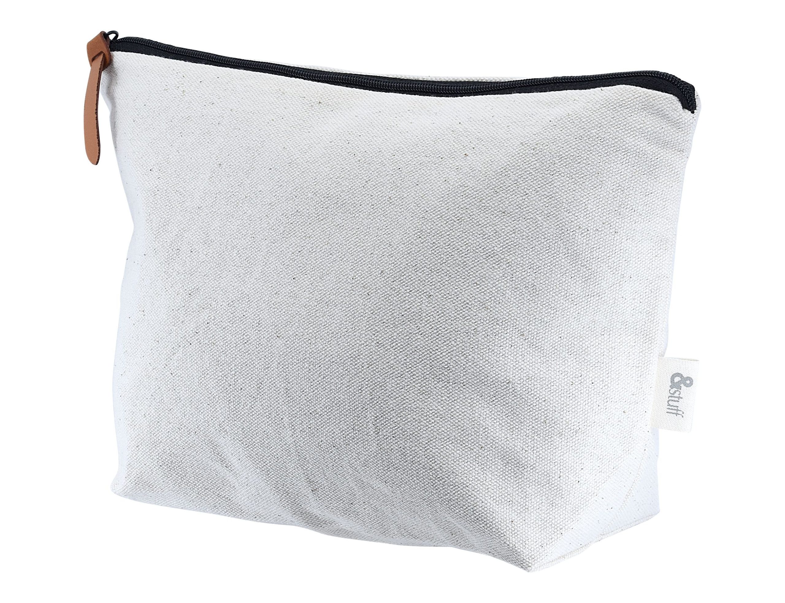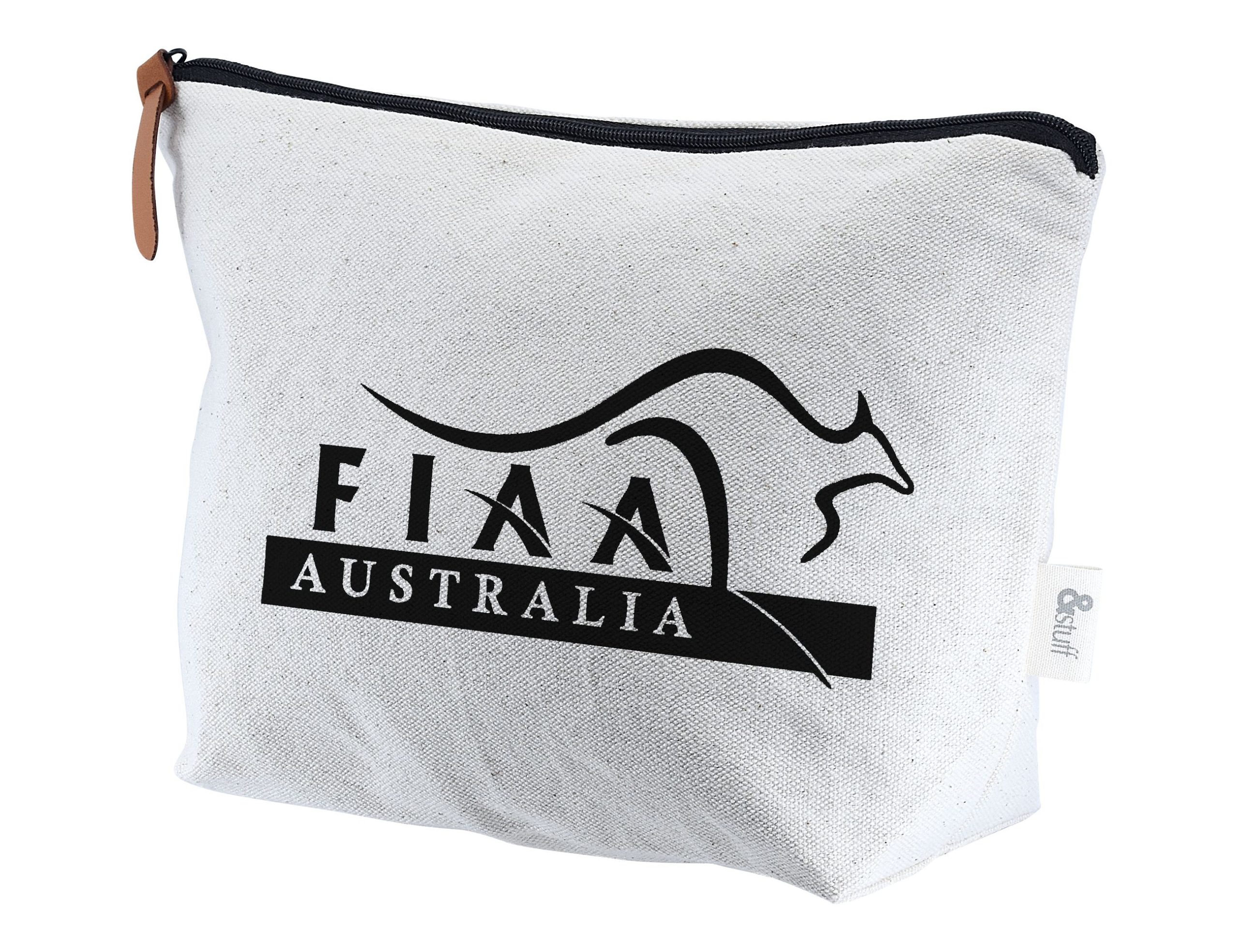 - Options – select either: (1) natural or black coloured zip, (2) natural cotton zip puller or leatherette zip puller, (3) debossed logo onto the leatherette badge or screen printed directly onto the calico material