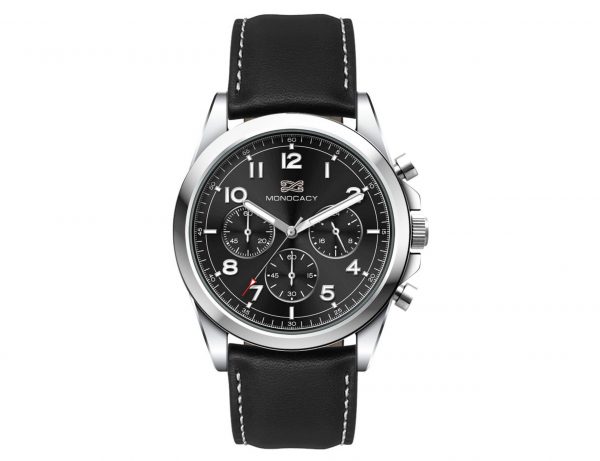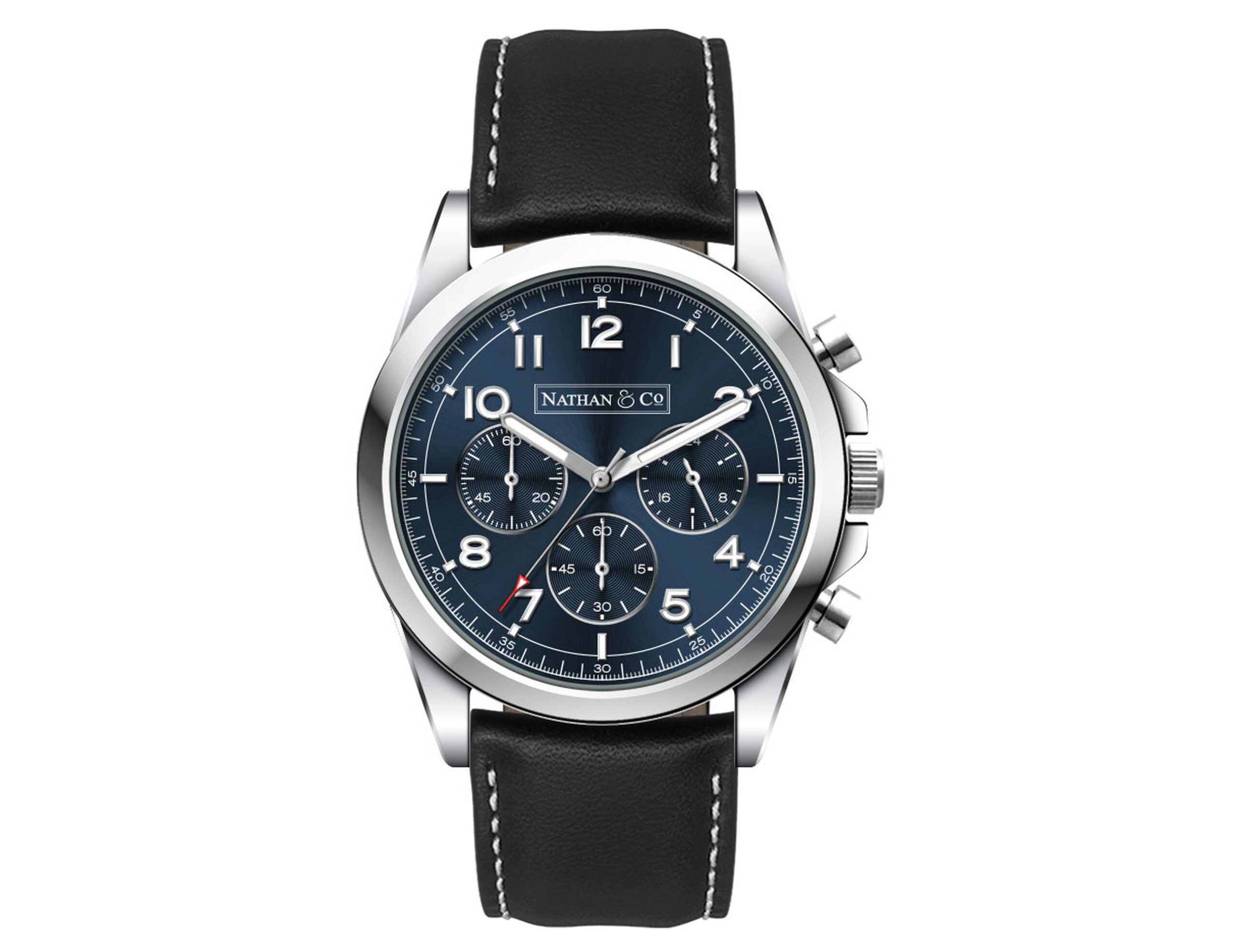 - This quality chrono unisex watch features an Ionic steel plated alloy case, padded black natural leather strap with white stitching, Seiko VD54 chrono movement and is water resistant to 3 atm’s
