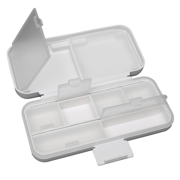 - Featuring eight individual compartments in three different sizes, this organiser is perfect for pills, supplements, or small items like vitamins and craft supplies