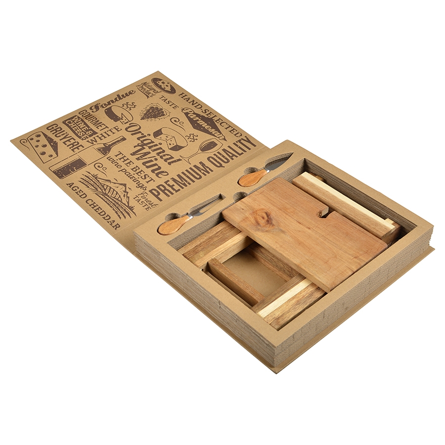 - A foldable board that quickly becomes a cheese and wine table set for 2!