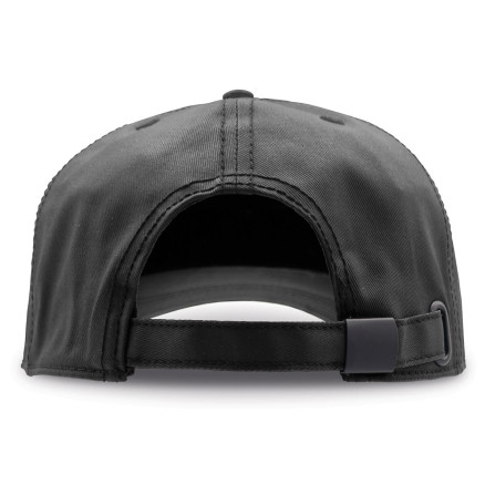 • Adjustable fabric strap with matte black clip buckle with grommet and tuck in fastener