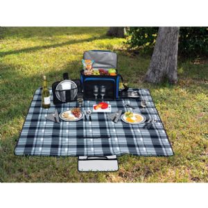 - This folding rug has a velcro closure with pocket on the front flap, a carry handle, foam lining and water resistant PVC backing