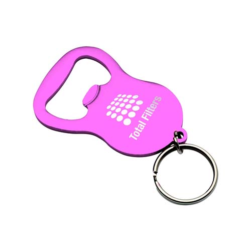 - This bottle opener keyring is made from anodized aluminium and is the perfect product for your logo