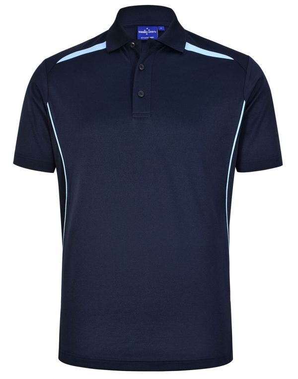 - This polo is made from recycled polyester fabric topped off with wicking properties that will keep you looking and feeling cool all day