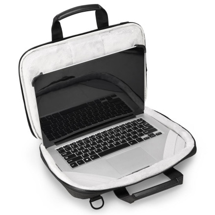 - Padded laptop compartment is typically designed to fit any laptop or tablet up to 14″ in size