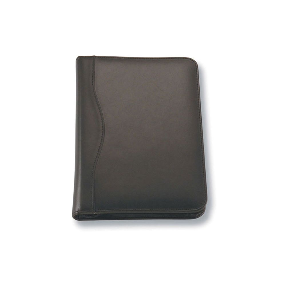 - Stylish and durable compendium made from top grade cowhide with zippered closure and removable 6-ring binder