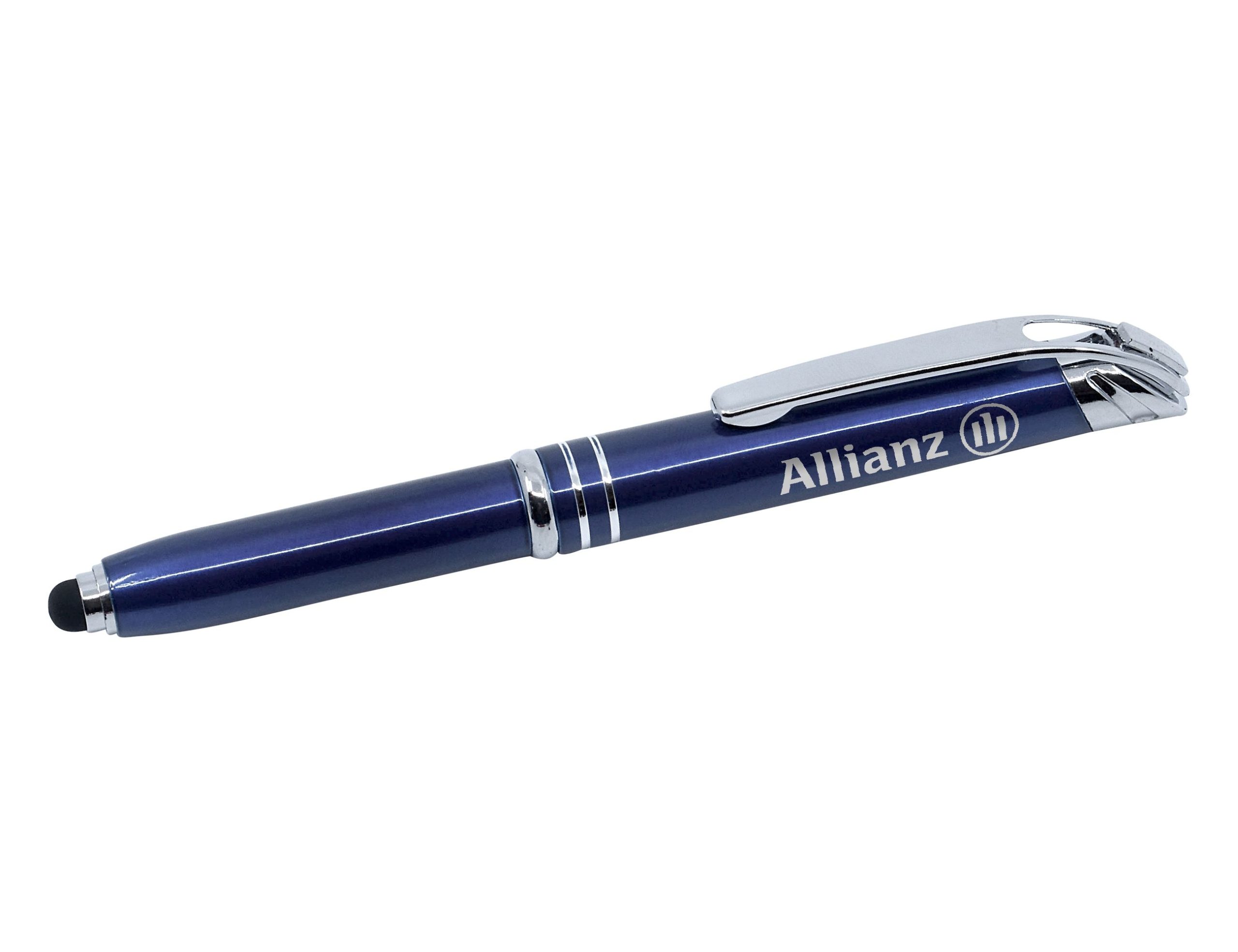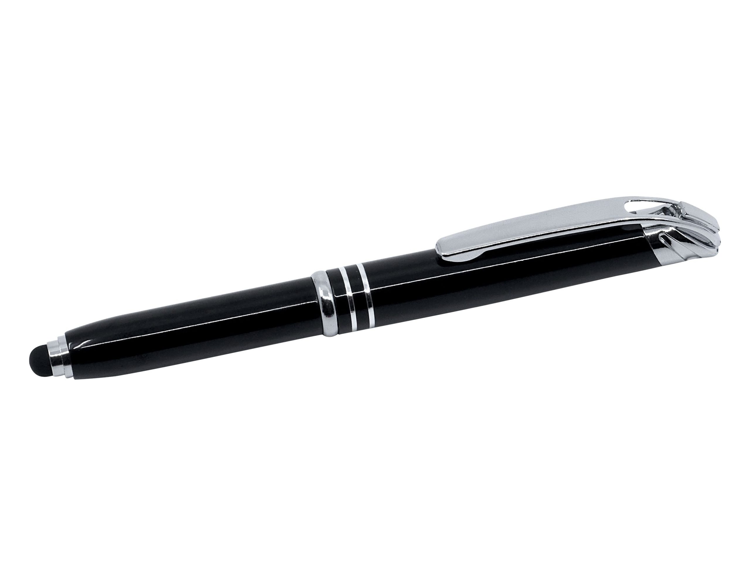 - This innovative 3-way aluminium pen features a useful stylus and super-bright LED torch
