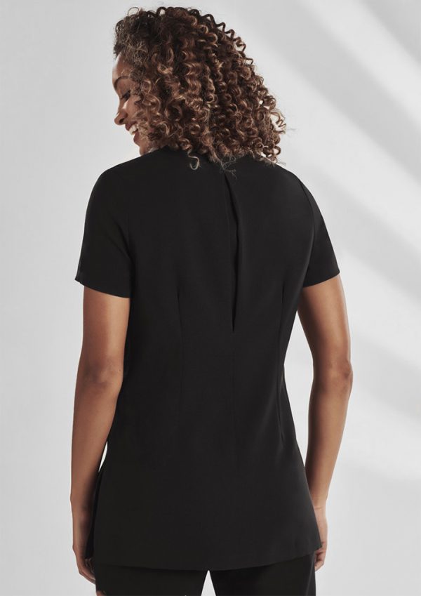- Semi-fitted concealed button through front with 2 lower front pockets